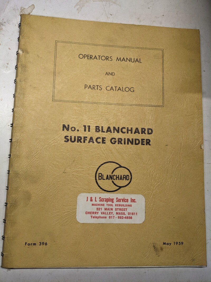 Blanchard Surface Grinder Operator Service Manual Parts List Catalog #11 1959
