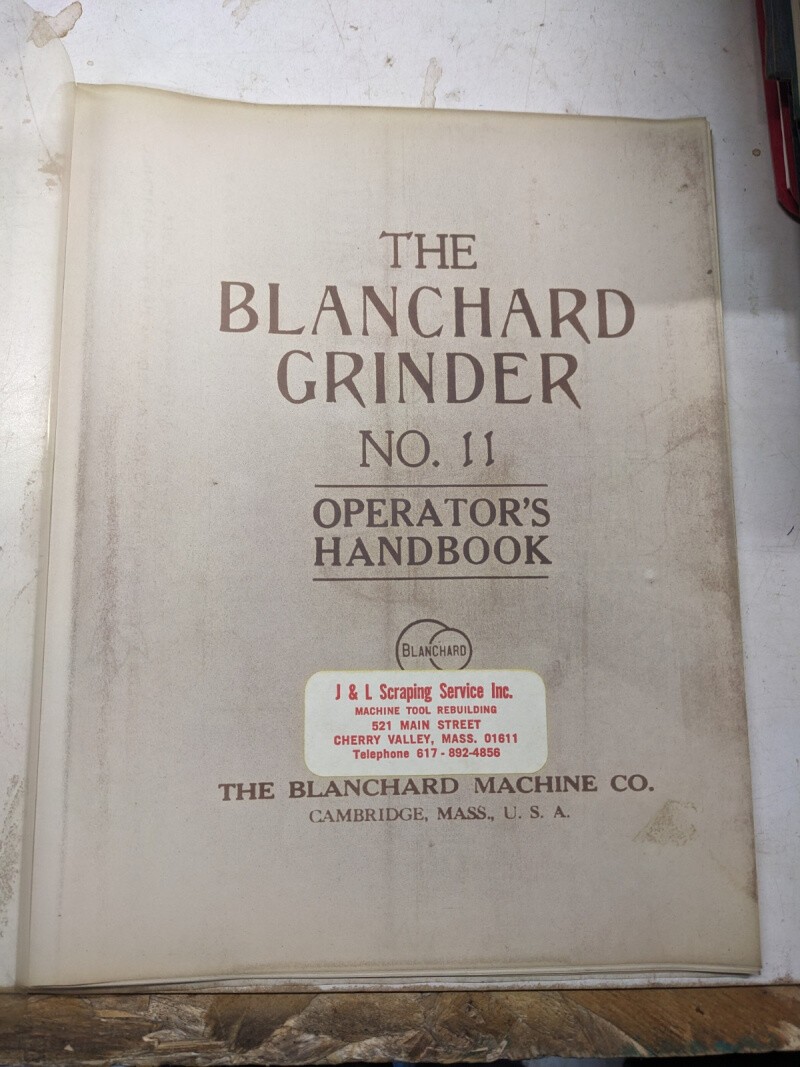 Blanchard Surface Grinder Operator Service Manual Shop Book #11 Photocopy