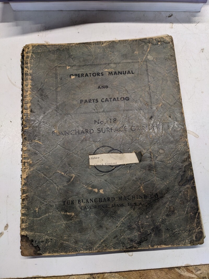 Blanchard Surface Grinders Operators Manual Parts Catalog Book List No 18 1956