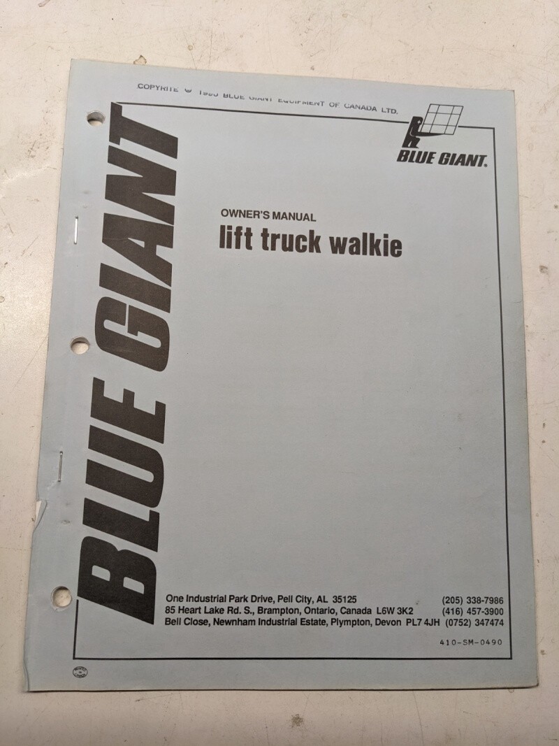 Blue Giant Owners Manual Maintenance Parts List Book Catalog Lift Truck Walkie