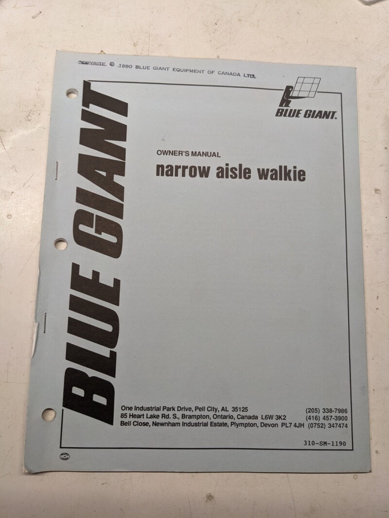 Blue Giant Owners Manual Maintenance Parts List Book Narrow Aisle Walkie 1190