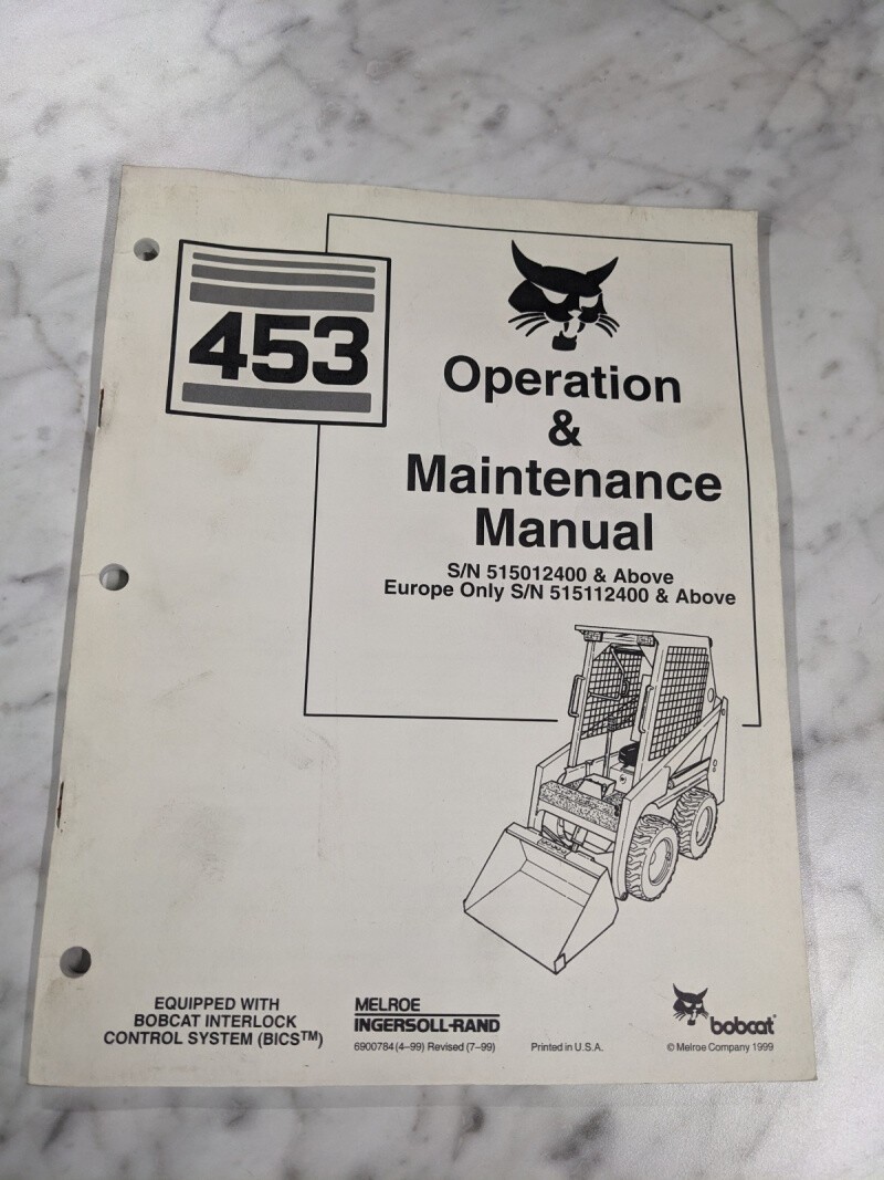 Bobcat Operation & Service Maintenance Shop Manual Skid Steer 453 1999
