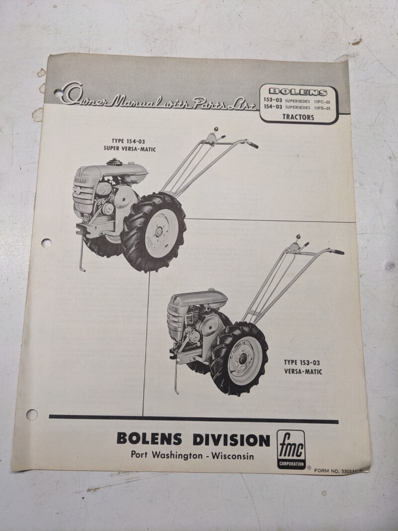 Bolens Fmc Owners Manual Parts List Catalog Book Versa Matic 153 154 -03 Super