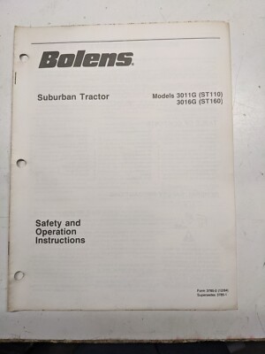 Bolens Manual Safety Operation Maintenance Owner Tractor 3011G St110 3016G St160