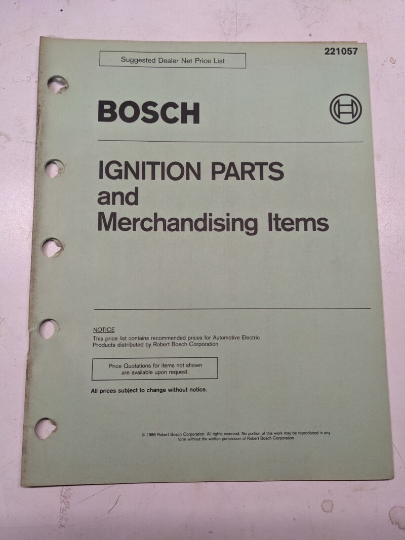 Bosch Jobber Net Price List 221057 1986 Shop Ignition Parts Merchandising Items
