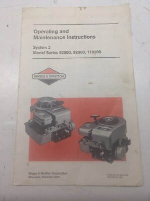 Briggs Operating & Maintenance Instructions 92500 92900 110900 1986 Manual Book