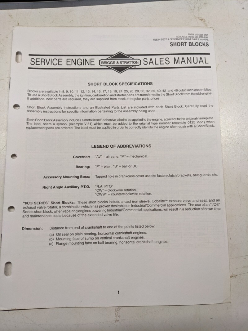 Briggs & Stratton 1997 Service Engine Sales Manual Model Series Breakdown