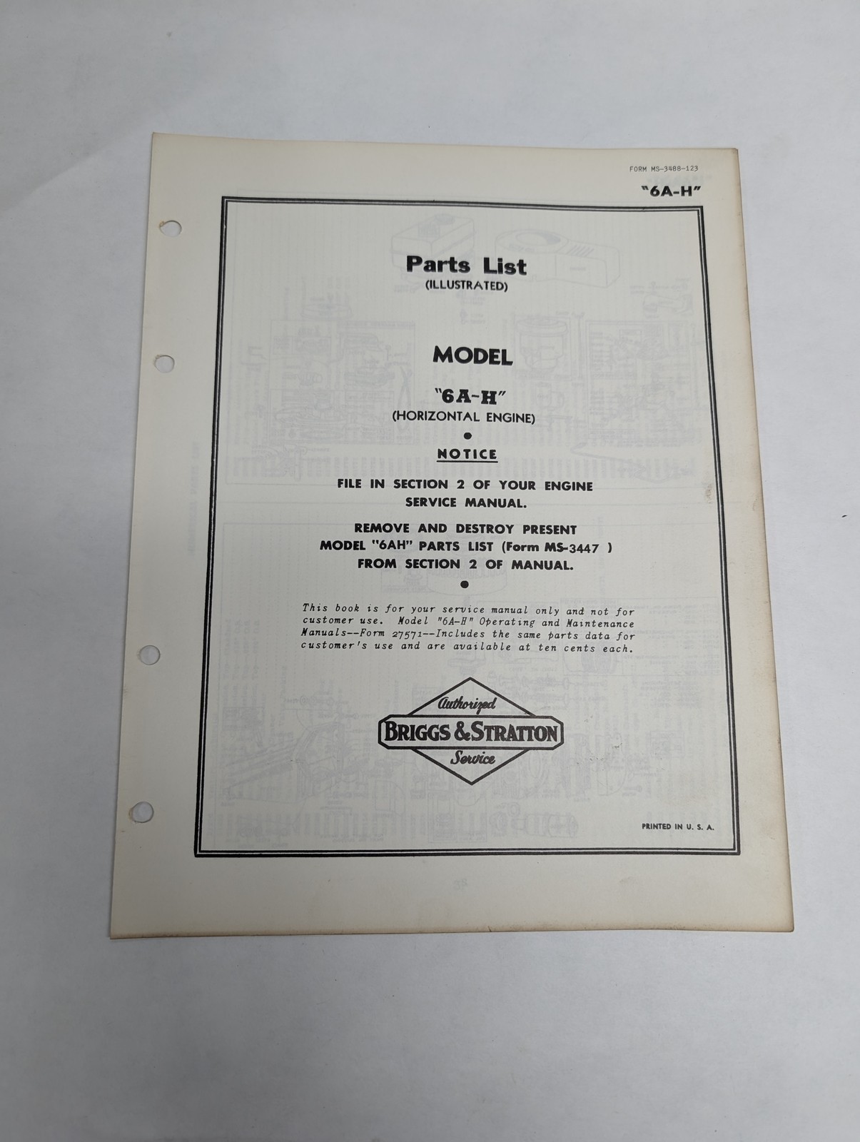 Briggs & Stratton Engine Illustrated Parts List Catalog Manual 6A-H Ms-3488
