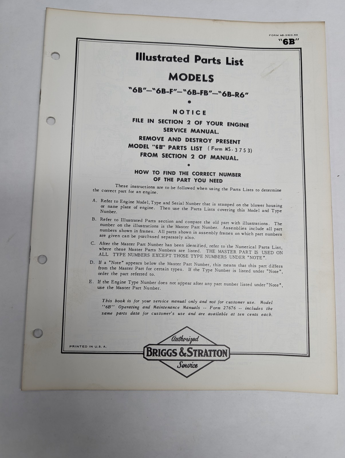 Briggs & Stratton Engine Illustrated Parts List Catalog Manual 6B Ms-3823