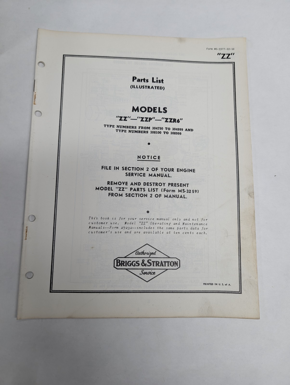 Briggs & Stratton Engine Illustrated Parts List Catalog Manual Zz Ms-3377