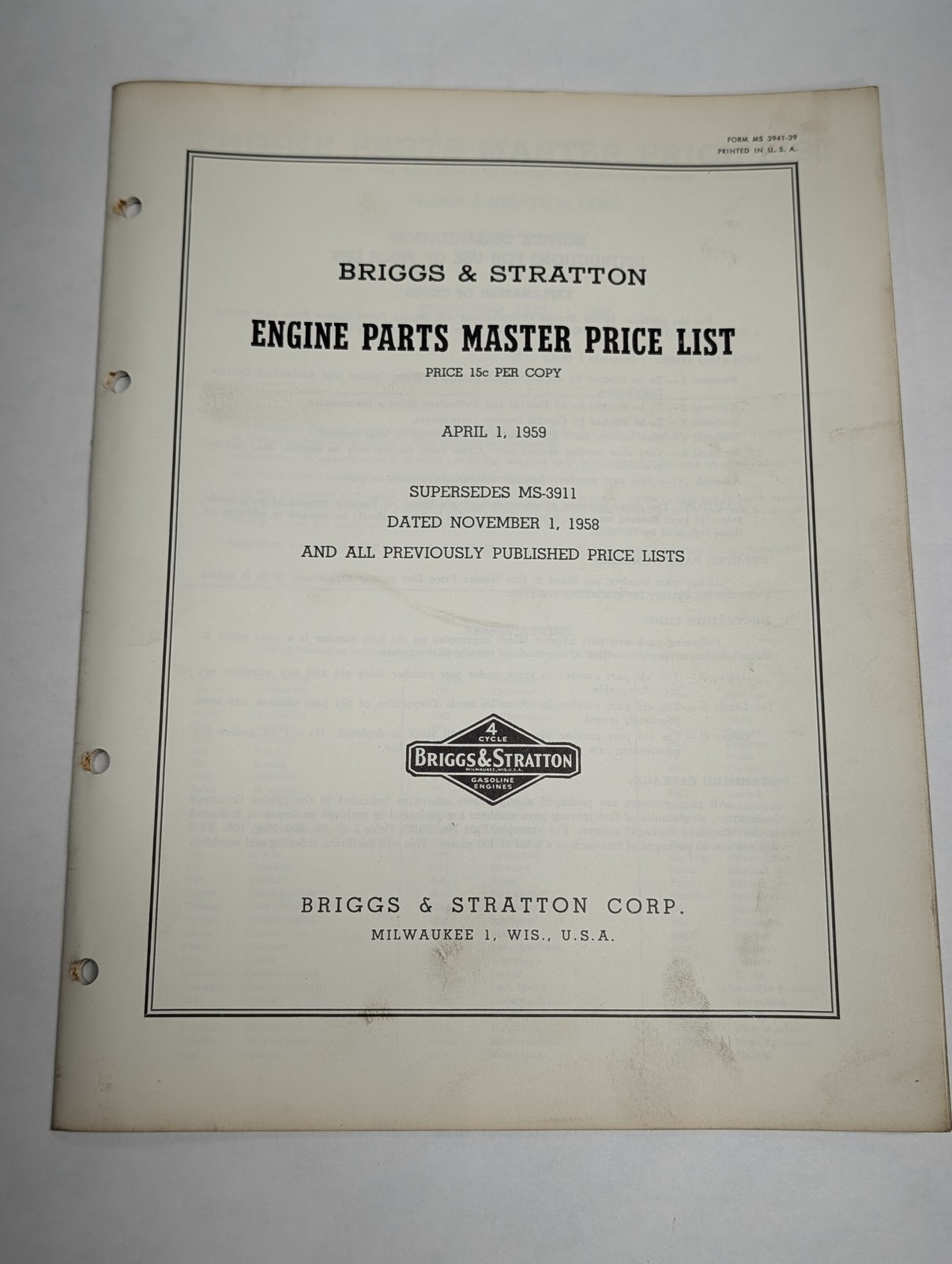 Briggs & Stratton Engine Parts Master Price List April 1 1959 Ms 3941-29 Usa
