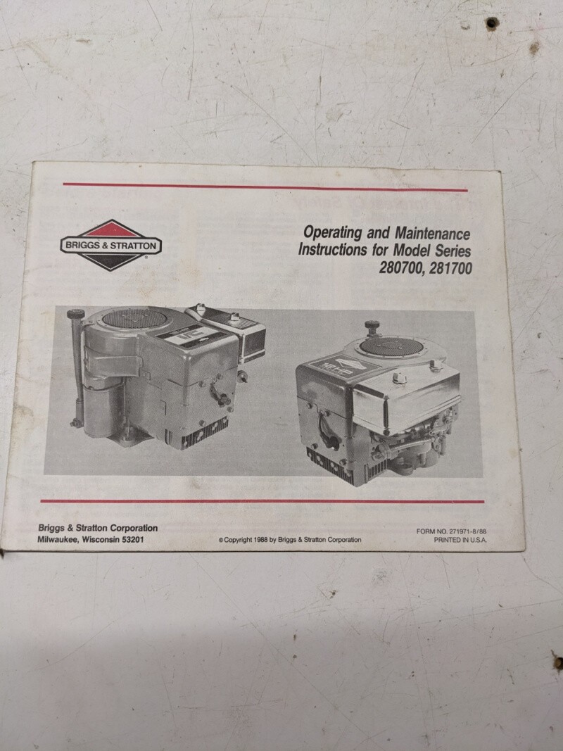 Briggs & Stratton Operating Maintenance Manual 280700 281700 Engine 291971-8