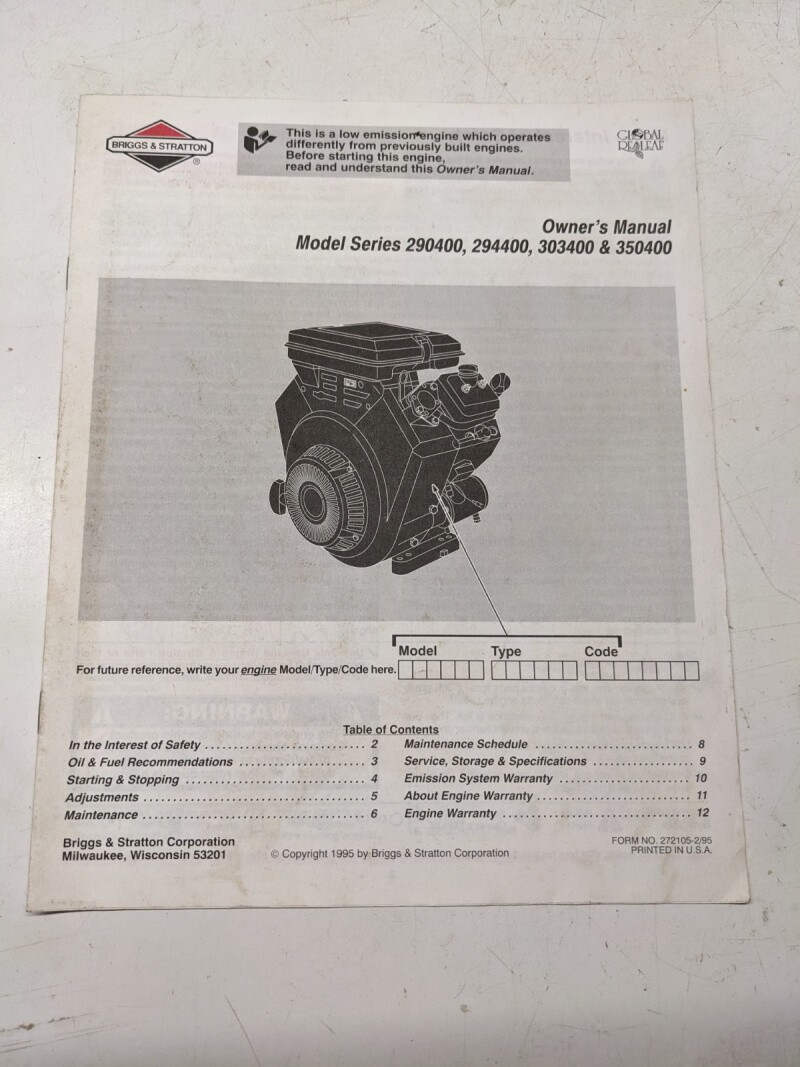 Briggs Stratton Operating Maintenance Manual 290400 294400 303400 350400 Engine