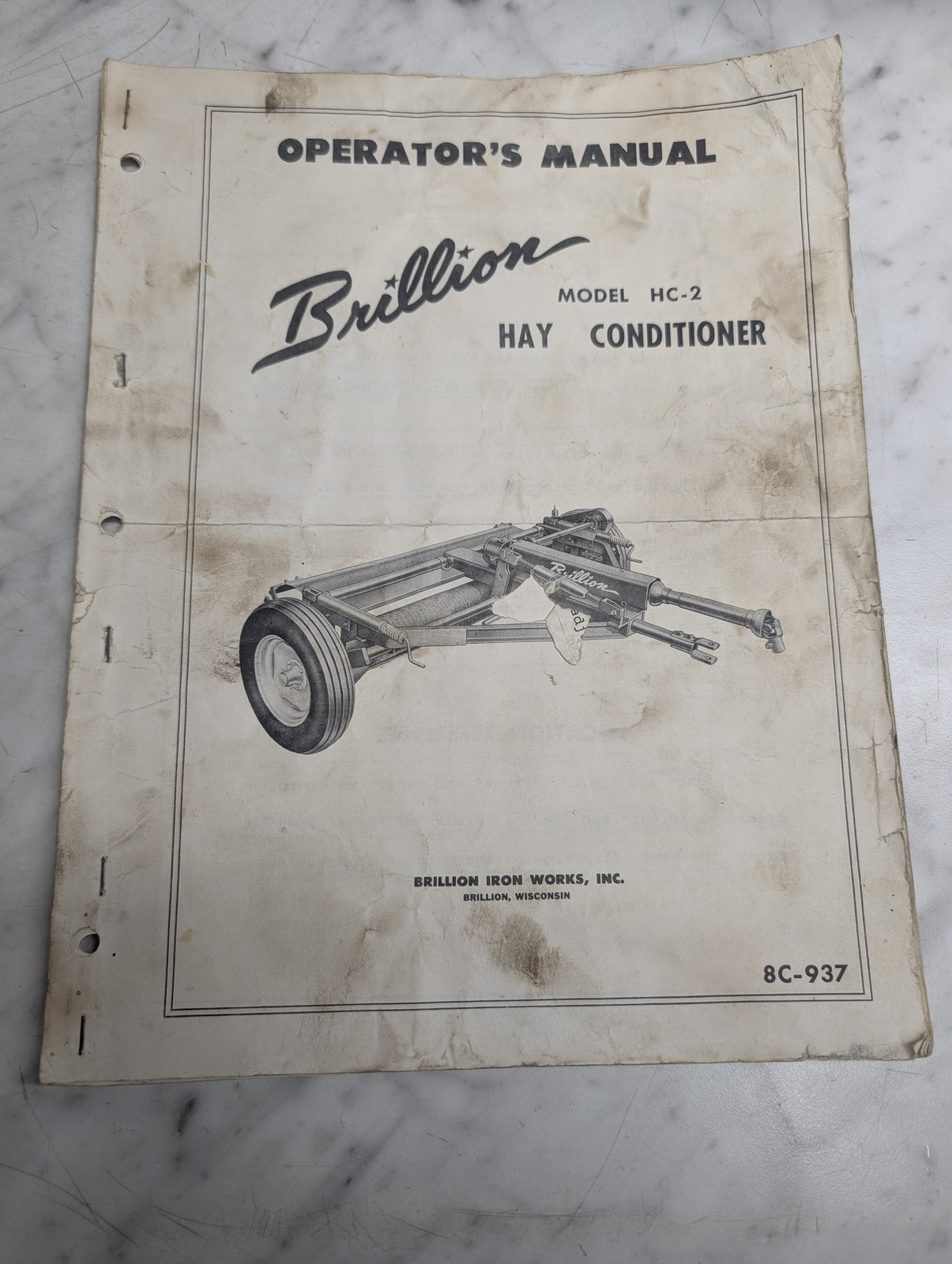 Brillion Operator’S Service Maintenance Manual Model Hc-2 Hay Conditioner