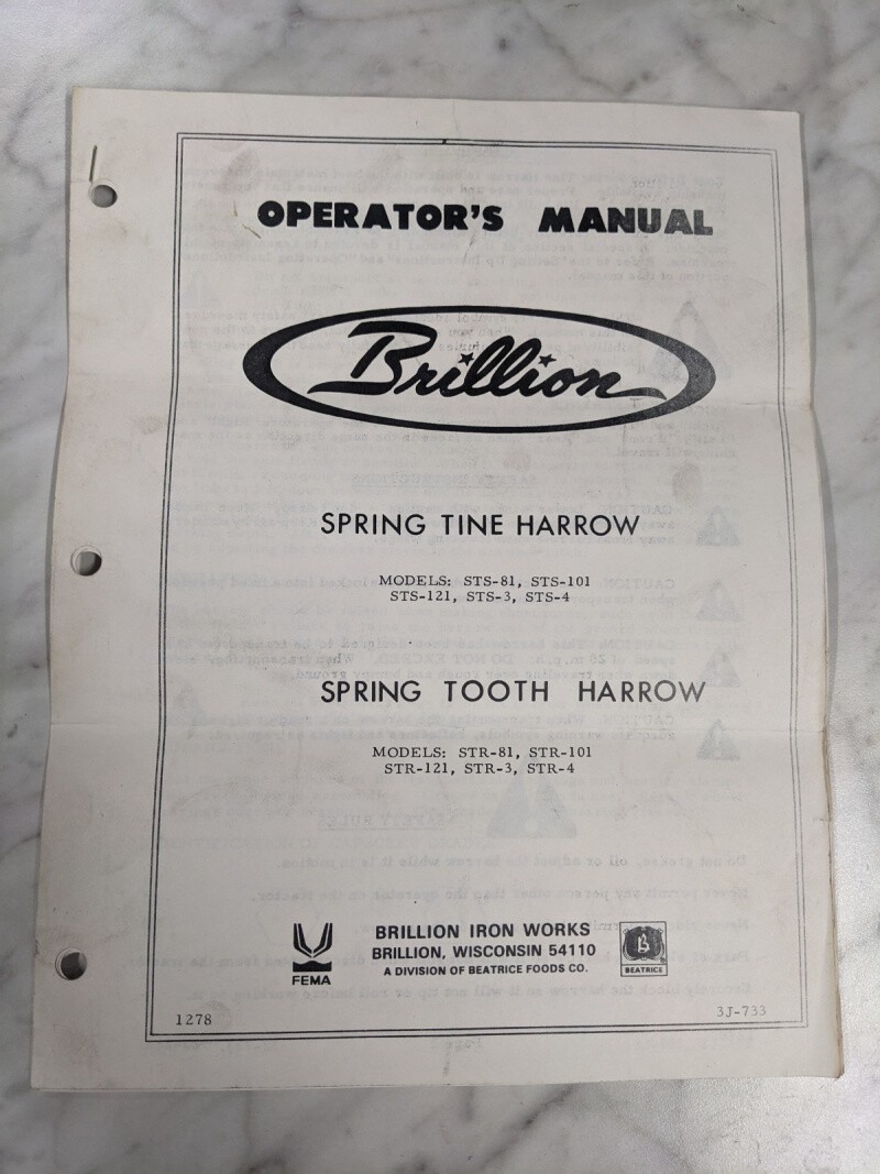 Brillion Service Repair Part List Catalog Spring Tooth Harrow Str-81 101 121 3 4