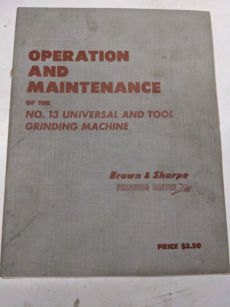 Brown & Sharpe Grinding Machine No 13 1964 Operation Maintenance Service Manual
