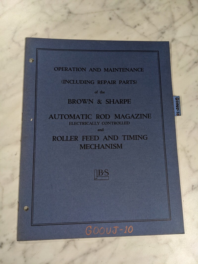 Brown & Sharpe Operator Manual Repair Parts List Catalog Rod Magazine Feed 1948