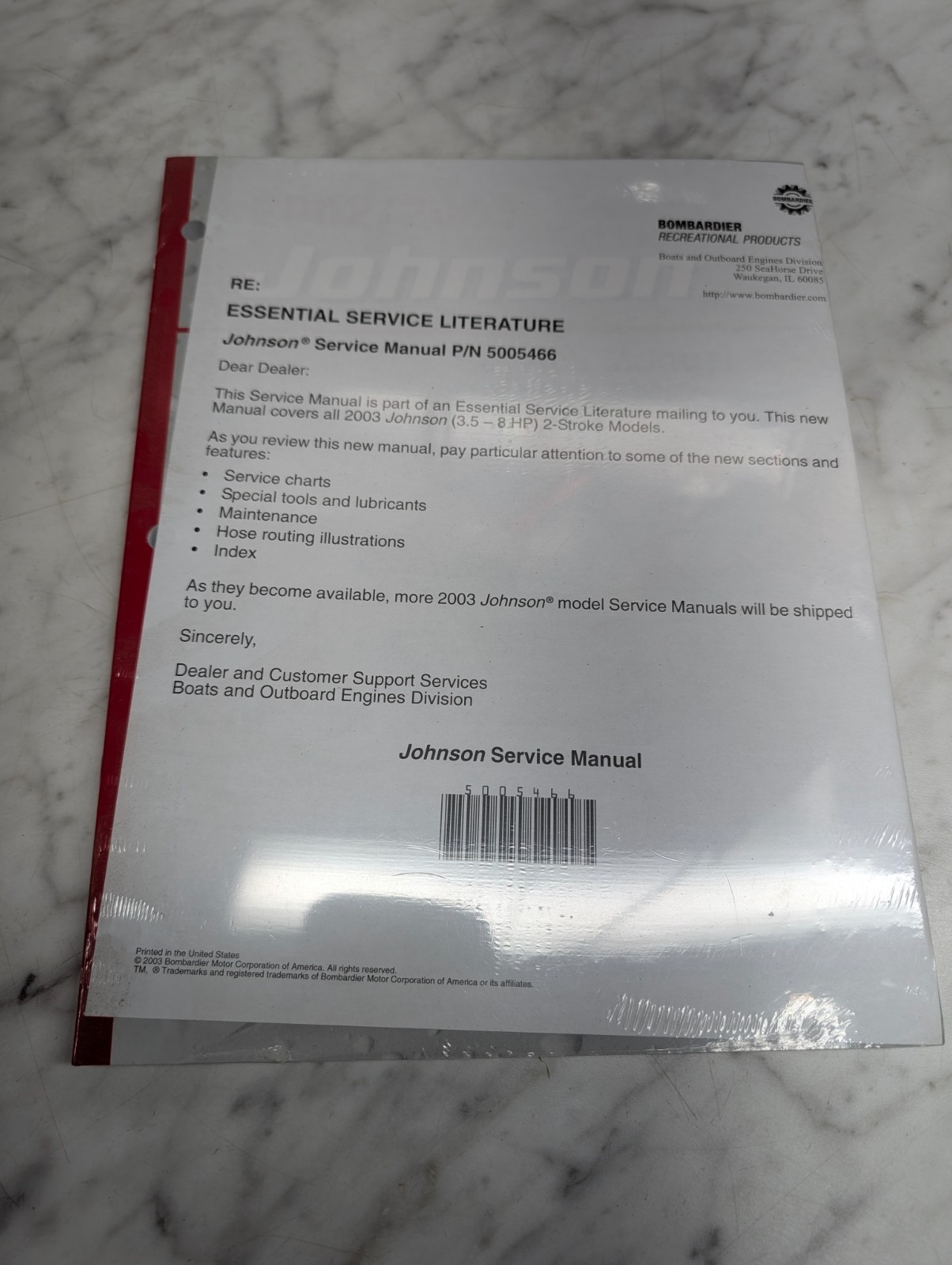 Brp Johnson Evinrude Service Manual “Sn/St” Models 3.5 6 8 Hp 2 Stroke #5005466