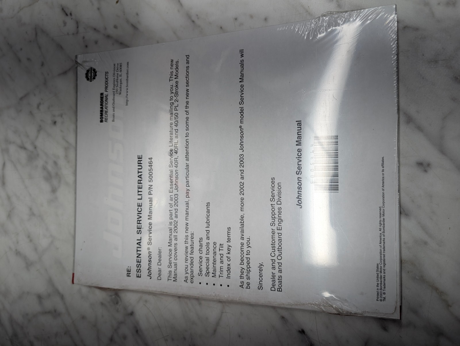 Brp Johnson Evinrude Service Manual “Sn/St” Models 40 50 Hp 2 Stroke #5005464