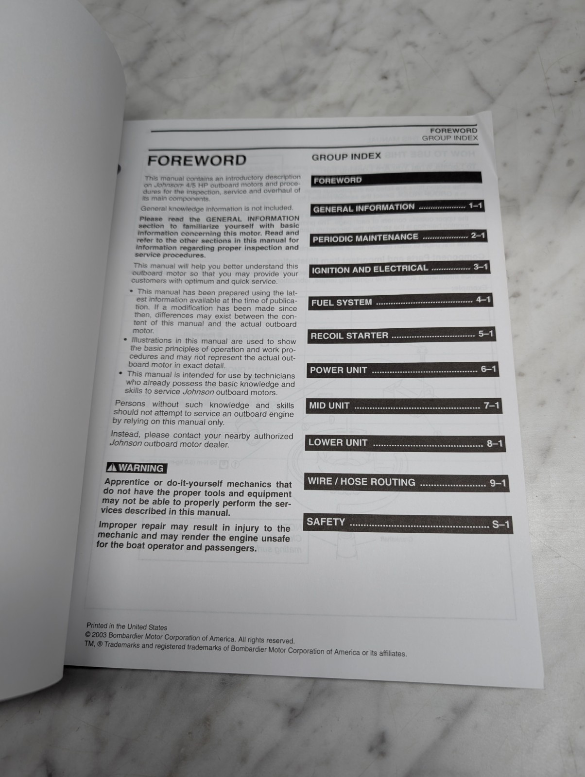 Brp Johnson Evinrude Service Manual “Sr” Models 4 5 Hp 4 Stroke #5005653