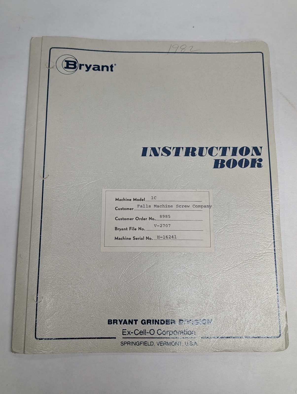 Bryant Centerless Grinder 1C Instruction Book Manual Operator Owner 1978 Edition