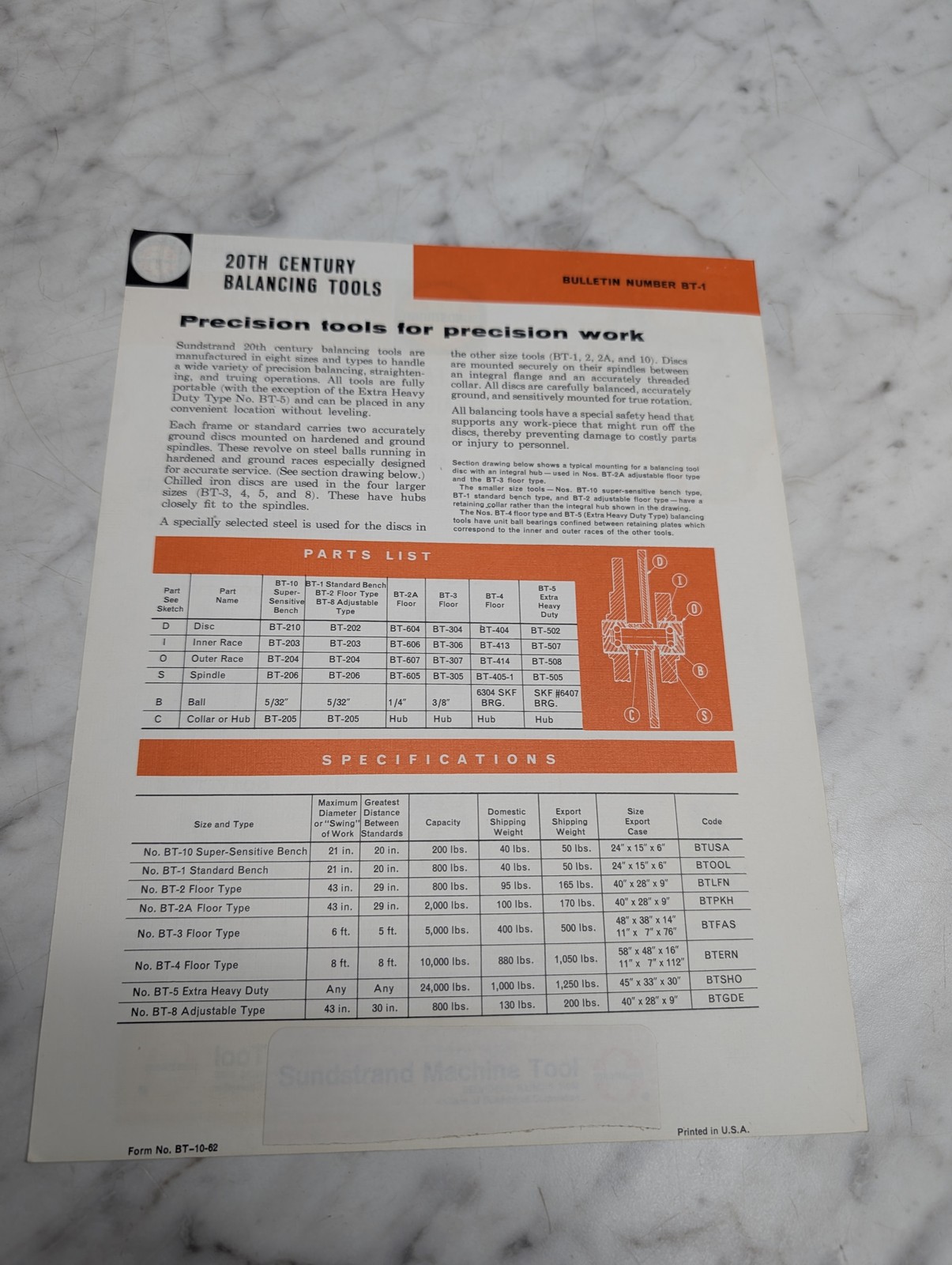 Bt-1 20Th Century Balancing Tools Bulletin Number Stuhr Manufacturing Brochure