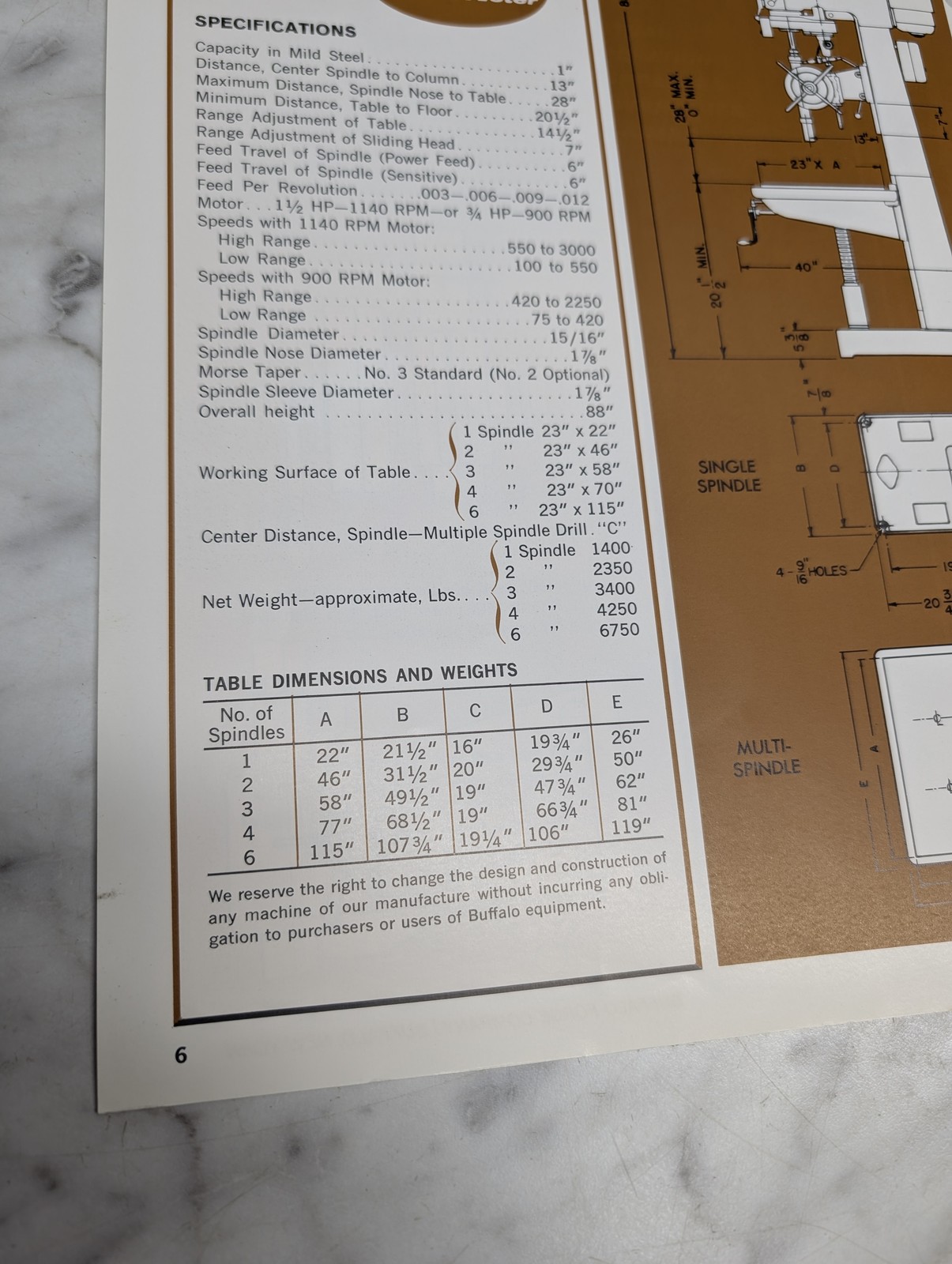Buffalo 1-A Rpmster Bulletin 3967-G Capacities Sales Brochure Literature