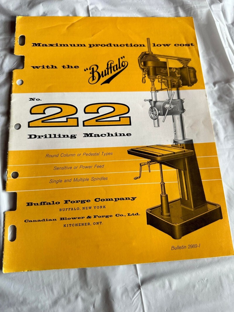 Buffalo #22 Drilling Machine Round Column Pedestal Types Spindles Sales Brochure