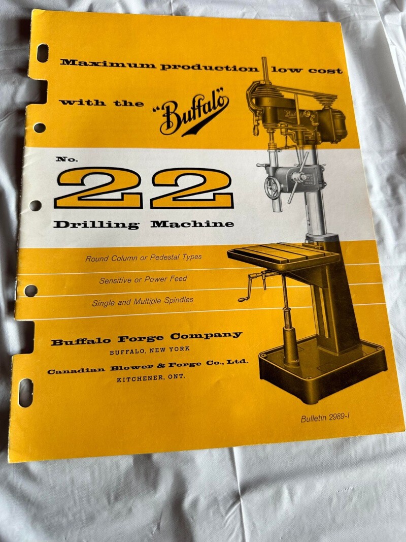 Buffalo #22 Drilling Machine Round Column Pedestal Types Spindles Sales Brochure