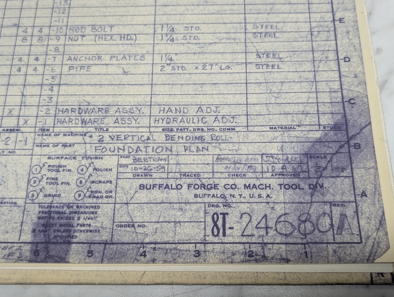 Buffalo Forge Literature Manual Prints Layout/Assembly-Rolls Flat On Flat #2 Br