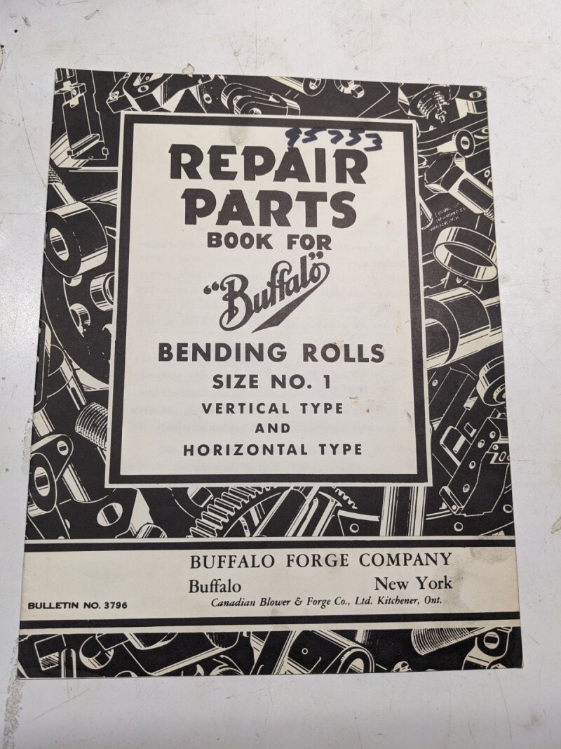 Buffalo Repairs Parts List Book Catalog Manual Bending Rolls No 1 V H 1950