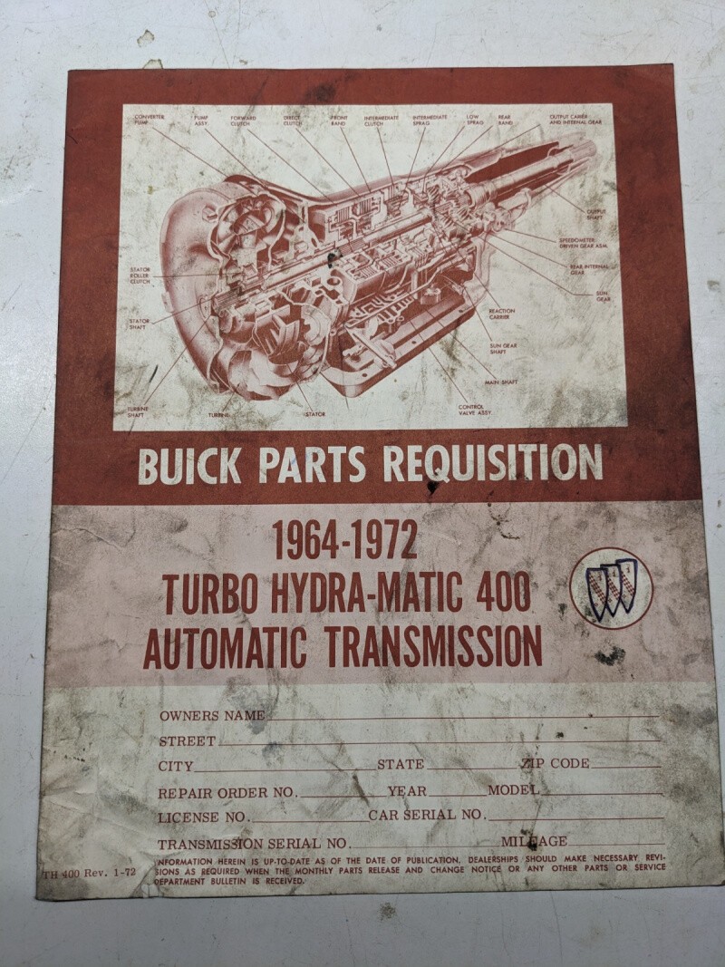 Buick Illustrated Parts List Form Transmission 1964-1972 400 Turbo Hydra Matic