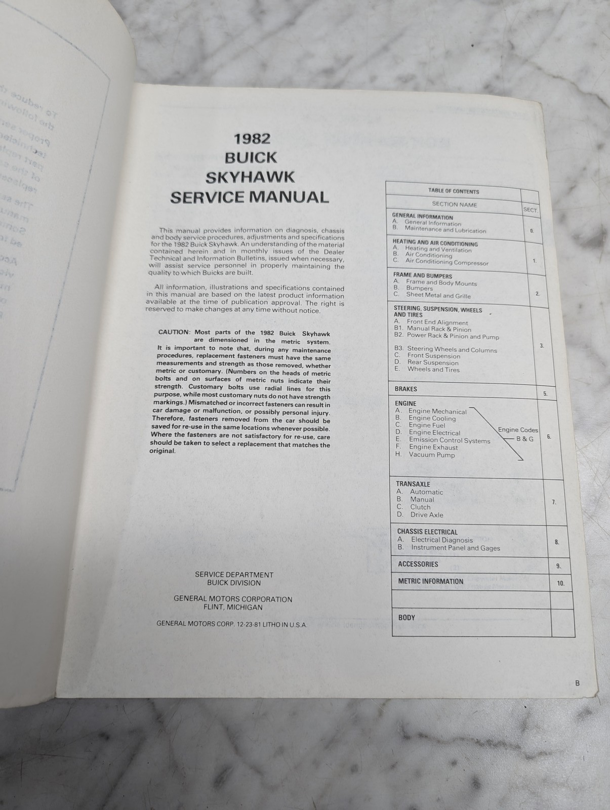 Buick Skyhawk Chassis Body Service Manual Repair Maintenance Shop 1982