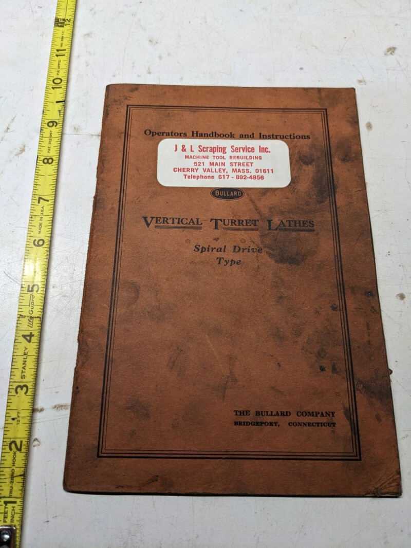 Bullard Lathe Turret Vertical Operator Book Instruction Manual Spiral Drive 1954