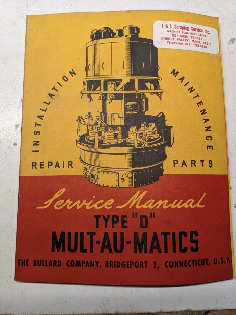 Bullard Mult-Au-Matics Type D Service Repair Maintenance Parts List Manual 1950