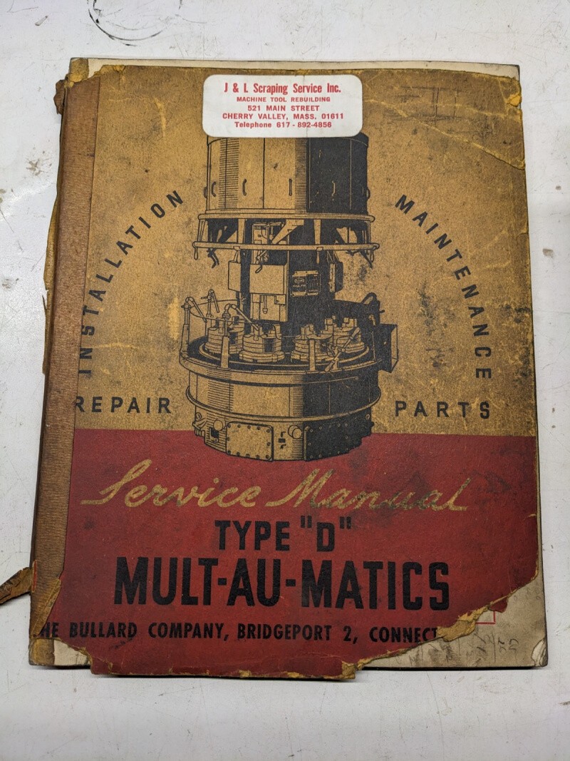 Bullard Mult-Au-Matics Type D Service Repair Maintenance Parts List Manual 1953