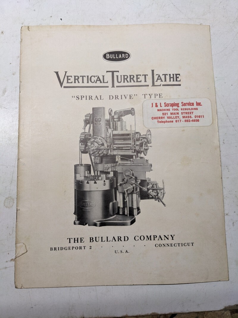Bullard Turret Lathe Spiral Drive Type Specs Sales Brochure Catalog Vtl 24-54