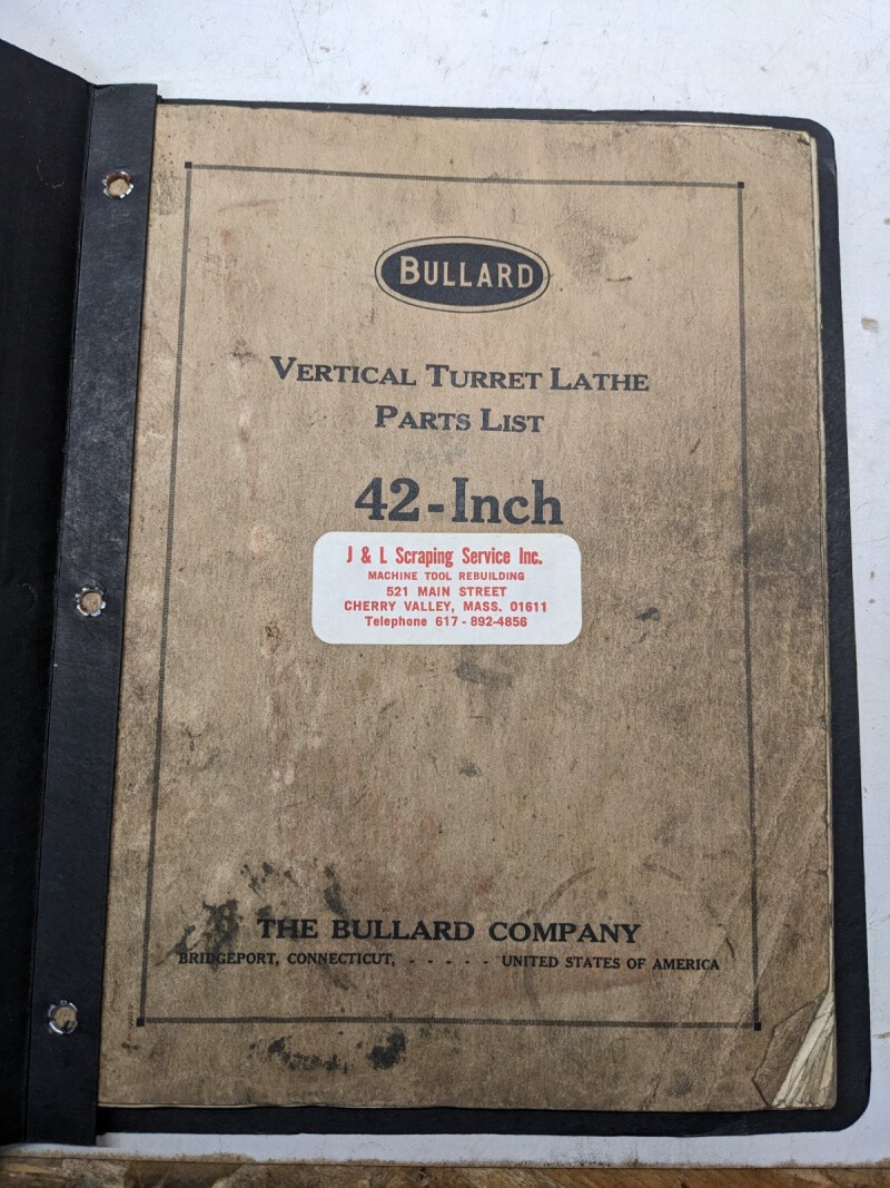 Bullard Vertical Turret Lathe 42” Machine Parts List Book Manual Catalog 1930
