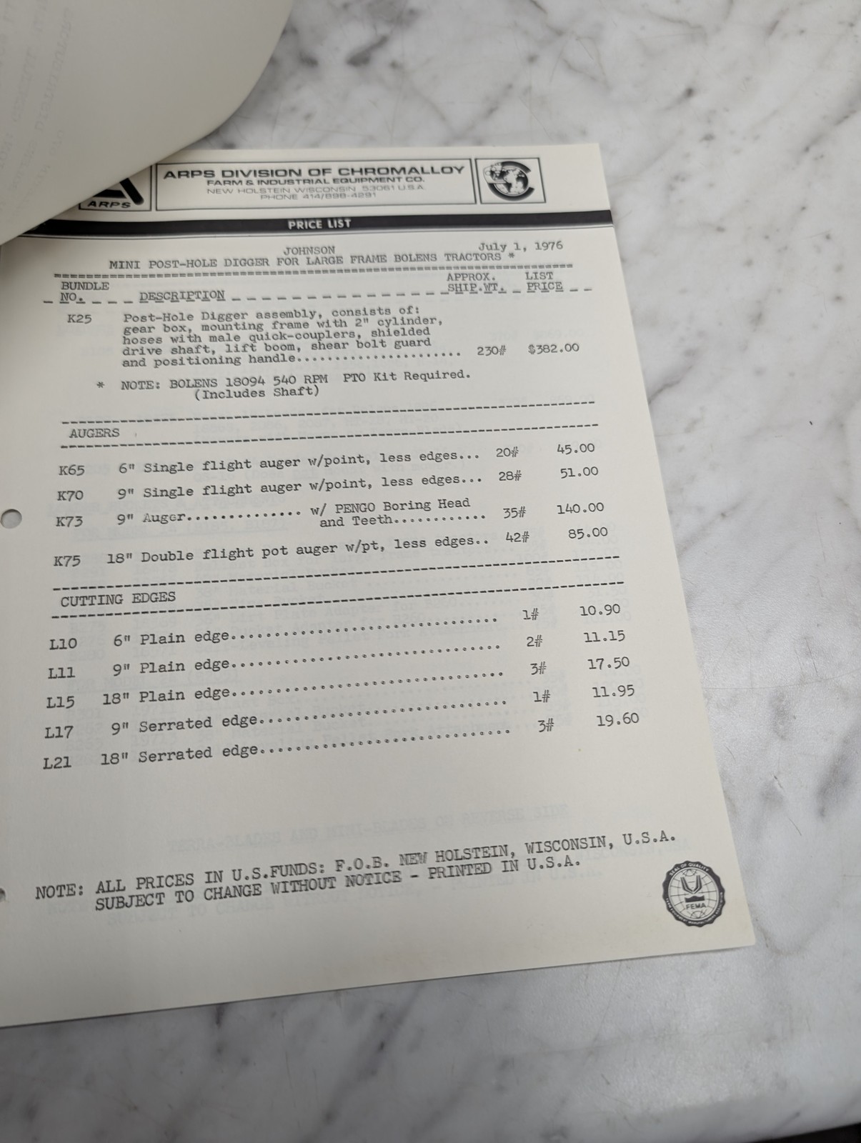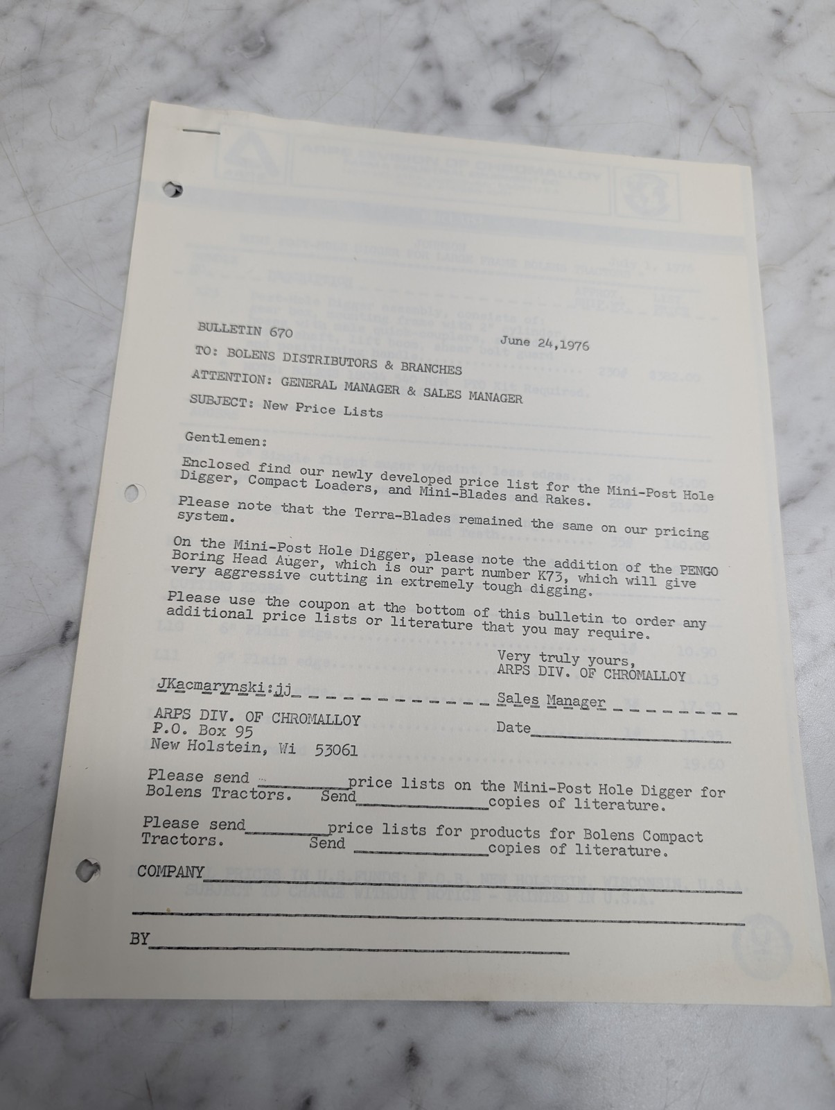 Bulletin 670 Bolens New Price Lists Mini Post Hole Digger Part Number K73 June 2
