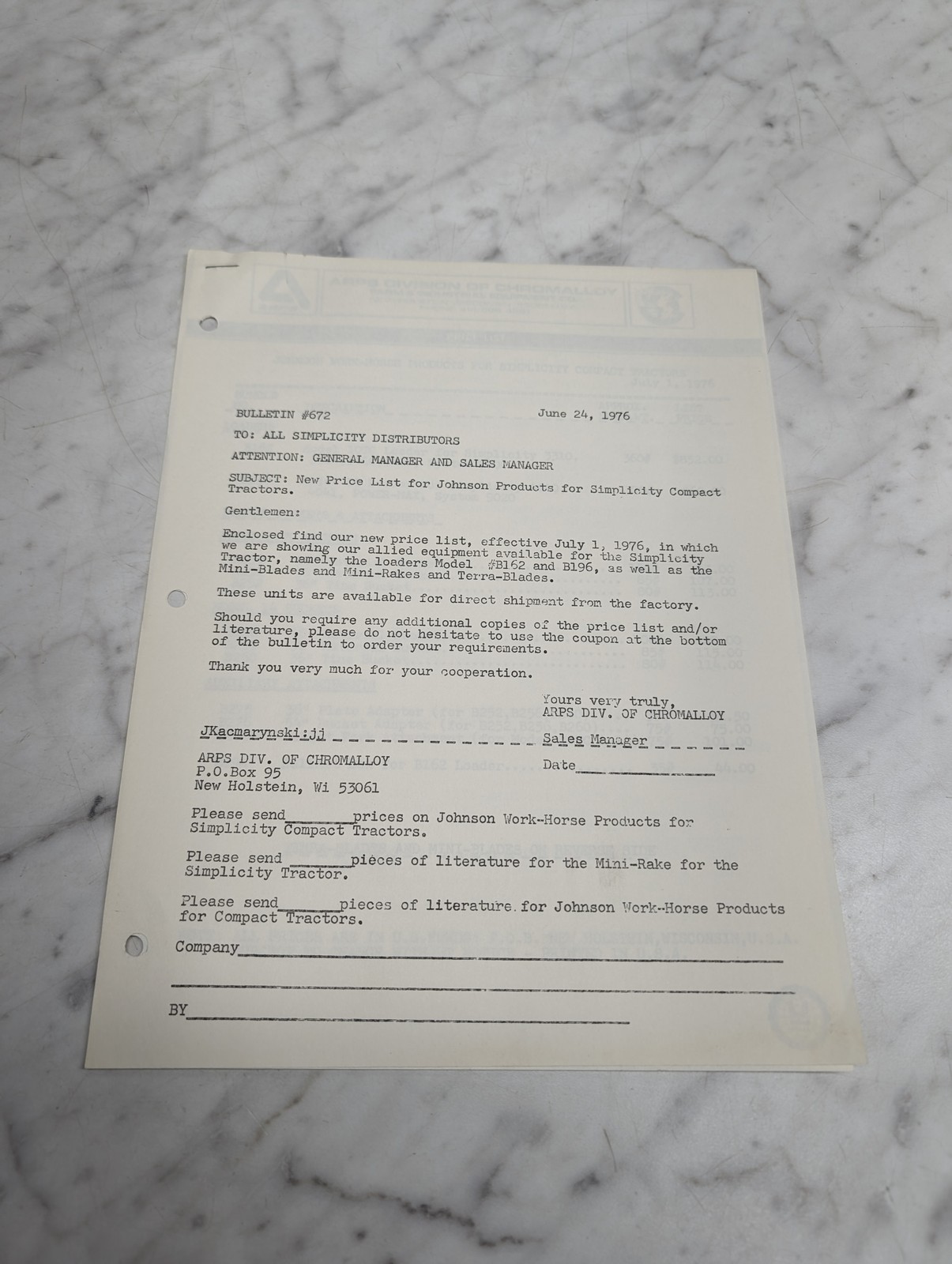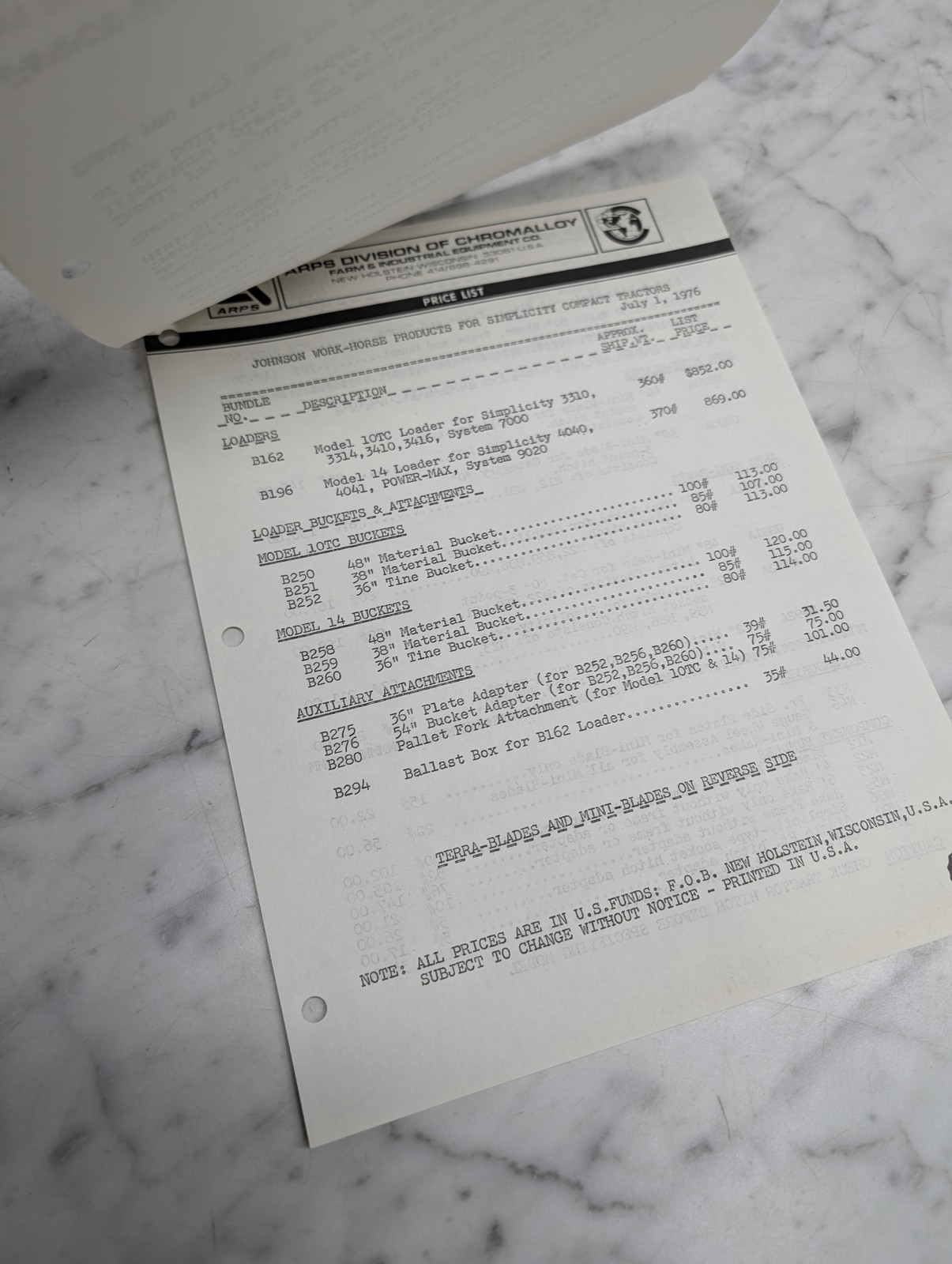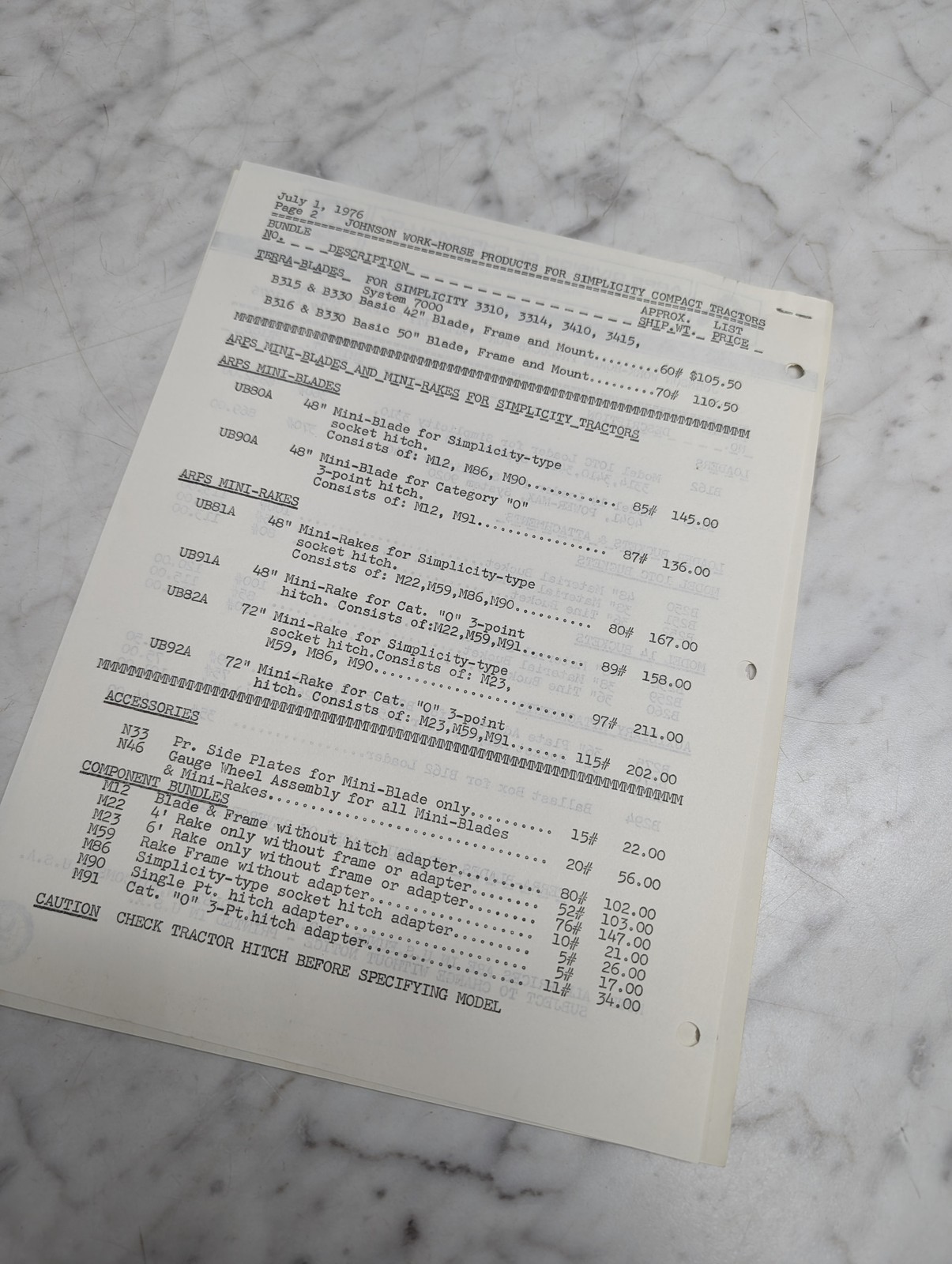 Bulletin 672 June 24 1976 Price List Johnson Simplicity Compact Tractors