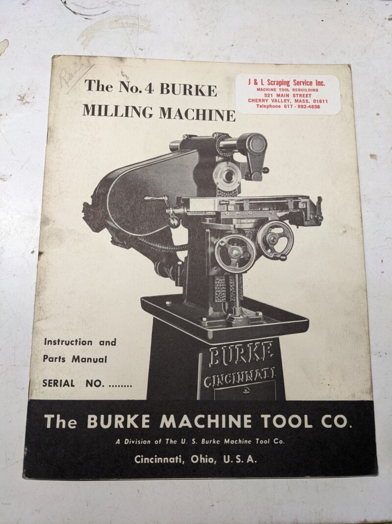Burke Milling Machine #4 Instruction Operator Manual Parts List Book Shop