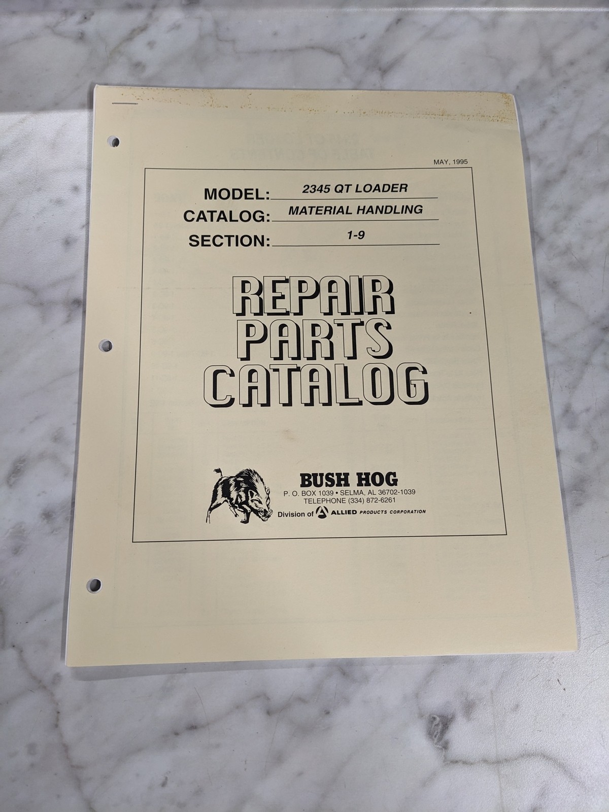 Bush Hog Illustrated Repair Parts List Book Catalog Manual 2345 Qt Loader 1995