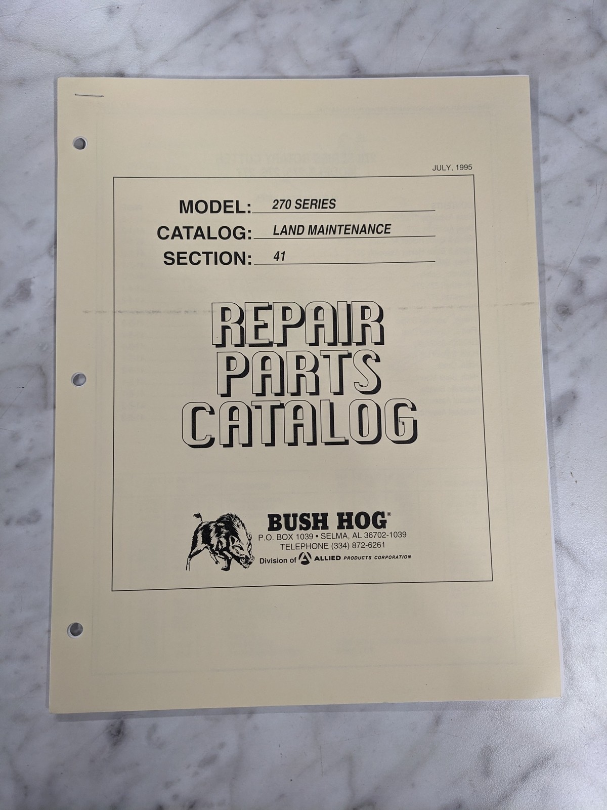Bush Hog Illustrated Repair Parts List Catalog Manual 270 Series Cutter 1995