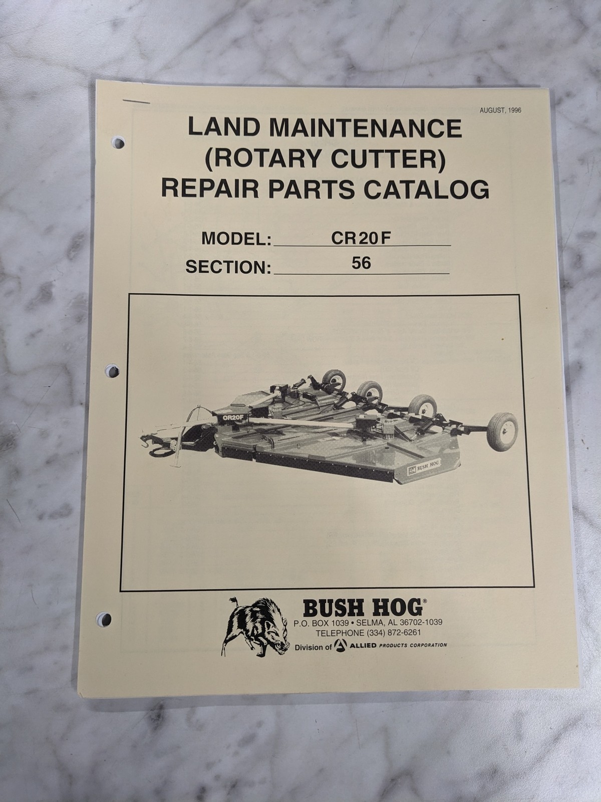 Bush Hog Illustrated Repair Parts List Catalog Manual Cr20F Rotary Cutter 1996