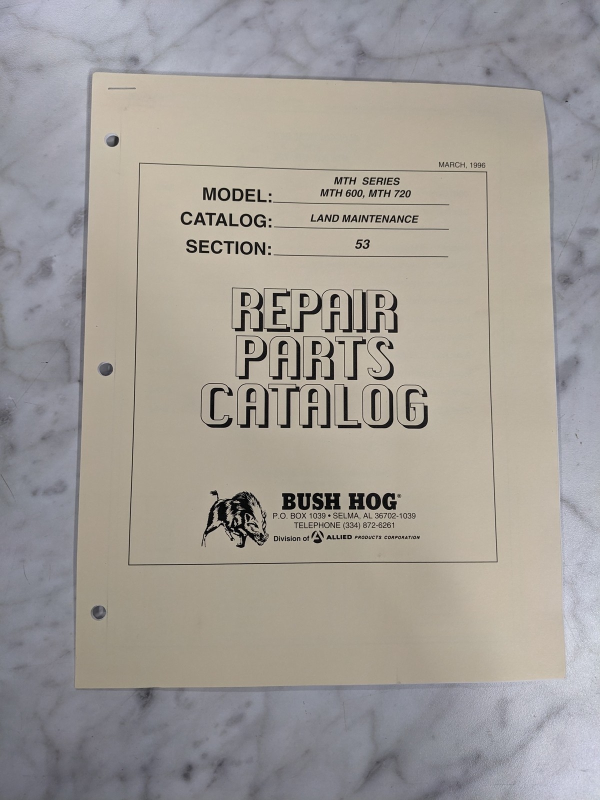 Bush Hog Illustrated Repair Parts List Catalog Manual Mth 600 720 Cutter 1996