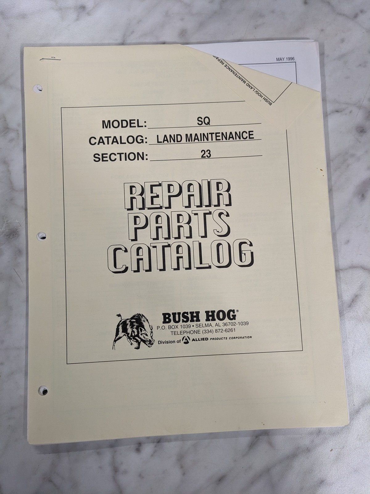 Bush Hog Illustrated Repair Parts List Catalog Manual Sq Squealers 1996