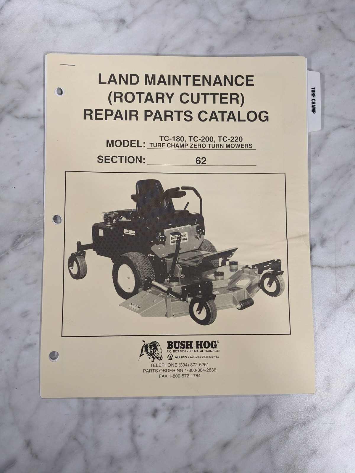 Bush Hog Repair Part List Catalog Manual Tc 180 200 220 Zt Mower Turf Champ 1997