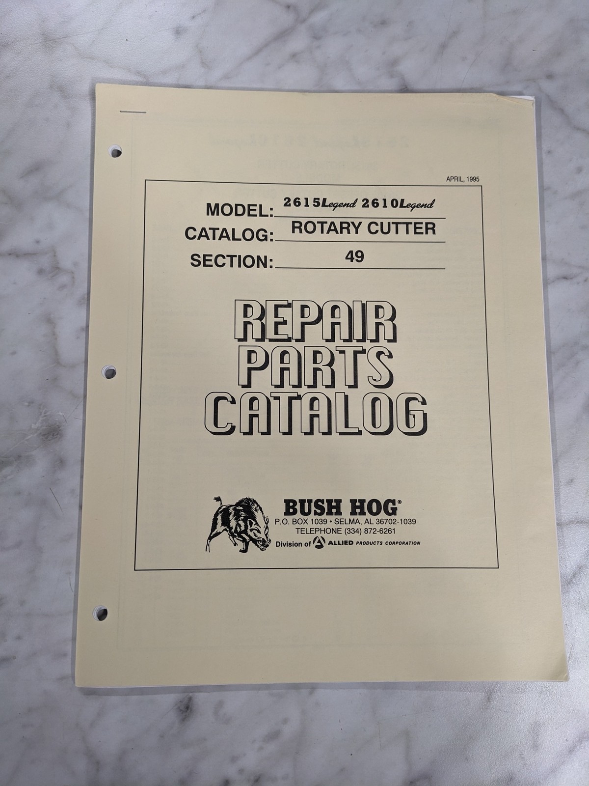 Bush Hog Repair Parts List Book Catalog Manual Rotary Cutter 2615 2610 Legend