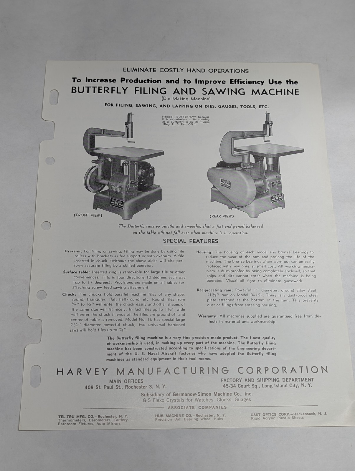 Butterfly Filing & Sawing Machine Sales Brochure Information D-10 El-12 H-14