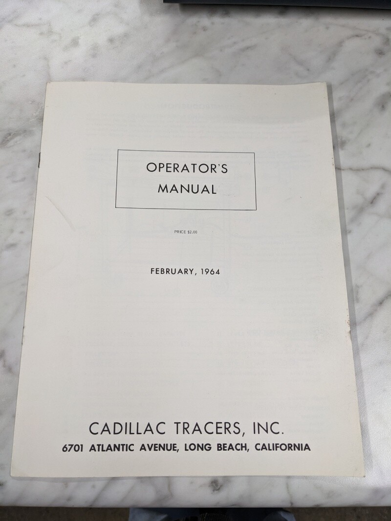 Cadillac Portable Tracers Inc Operator Service Manual 1964 Shop Tool Room Book